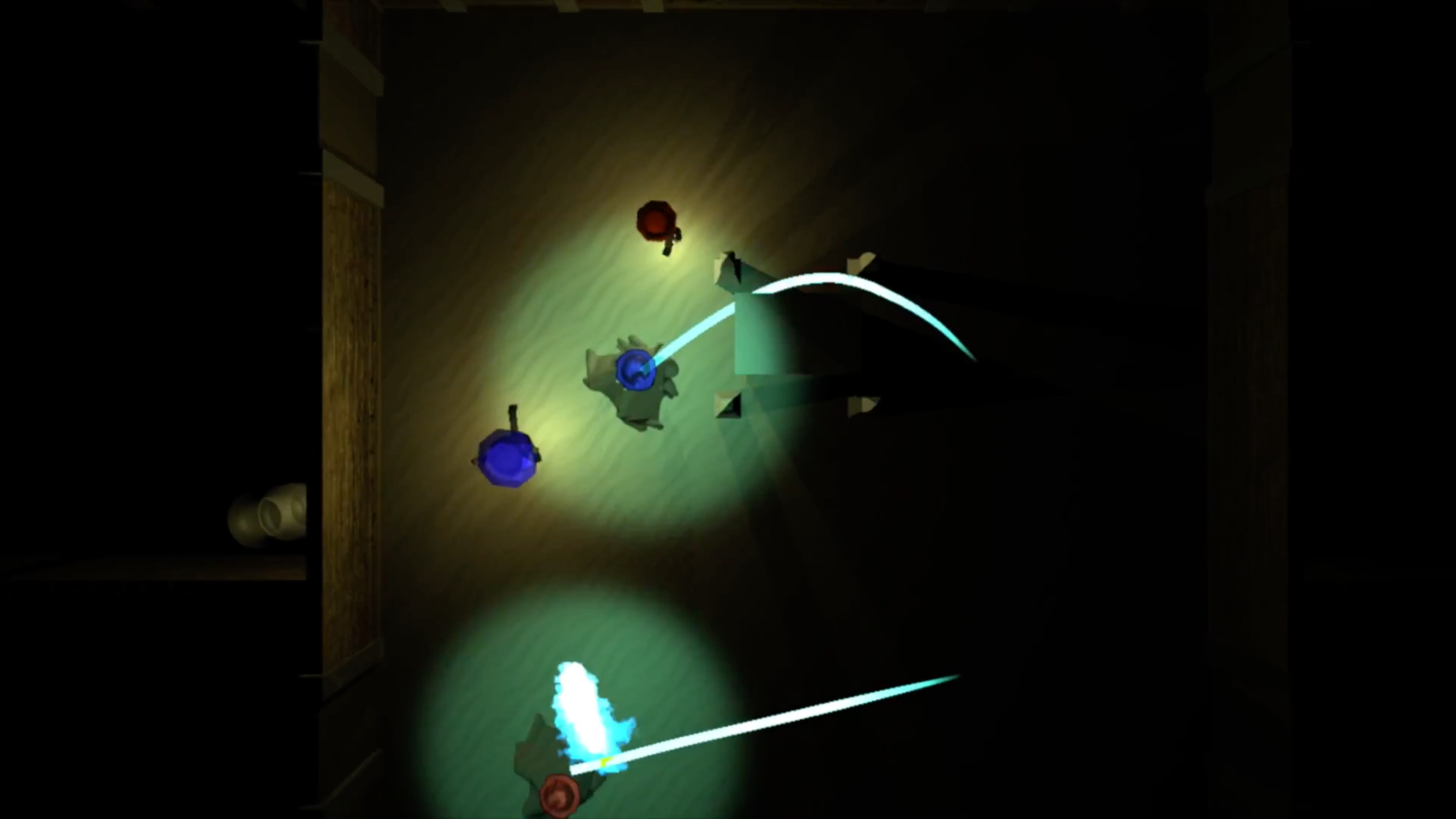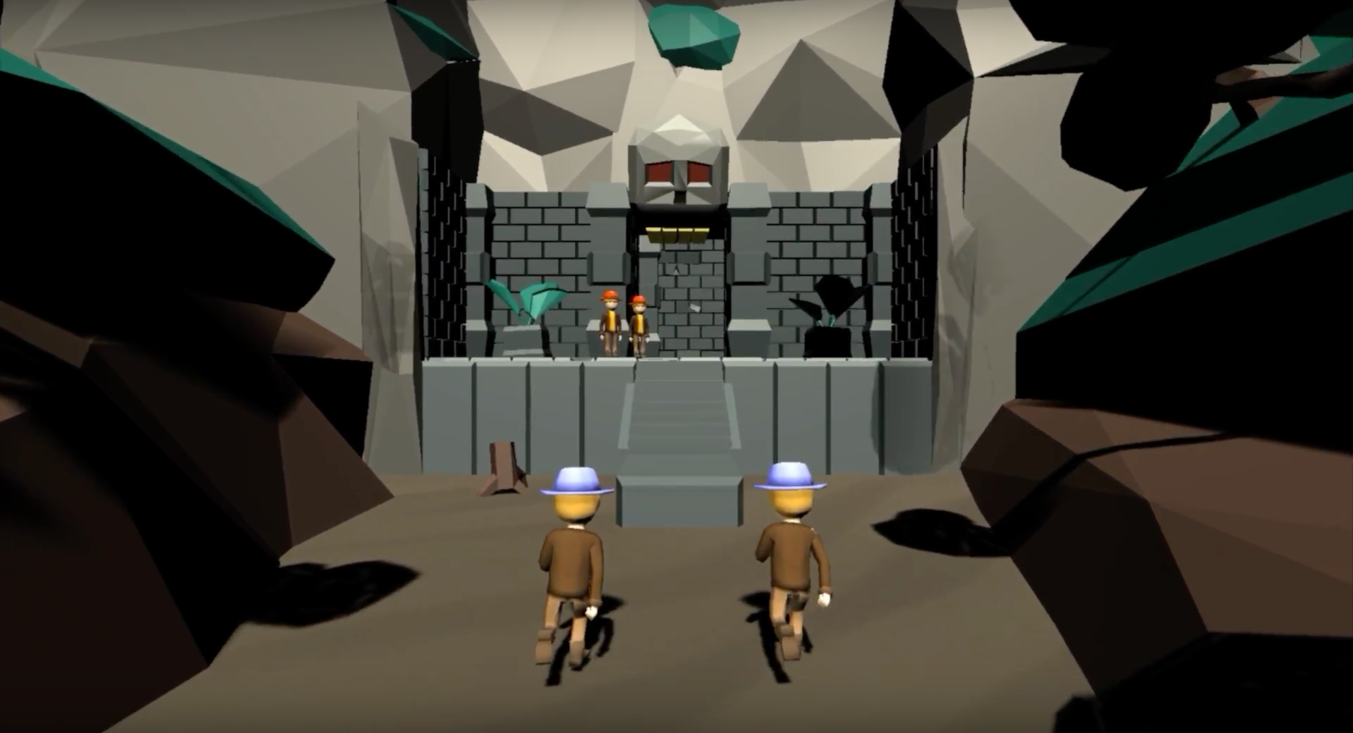 A 2v2 action game with teams consisting of a ghost and an adventurer fighting over a gem in an ancient desert temple.